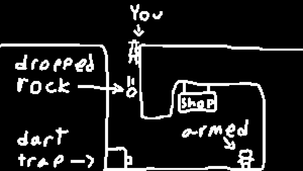 You can discover new strategies and secrets, sure, but the real upgrades are the things you learn not to do. To me, this was actually almost as rewarding as uncovering a secret, for example. There are so many things that can kill you if you don’t know exactly how they work. What’s worse, there are chain reactions that can quickly devolve into chaos! For example, you could be hanging from a ledge, drop a rock you were carrying, trigger a dart trap with the rock, and hurt a shopkeeper with the dart trap, angering him. The shopkeepers are no joke, and an angry one will probably kill you.